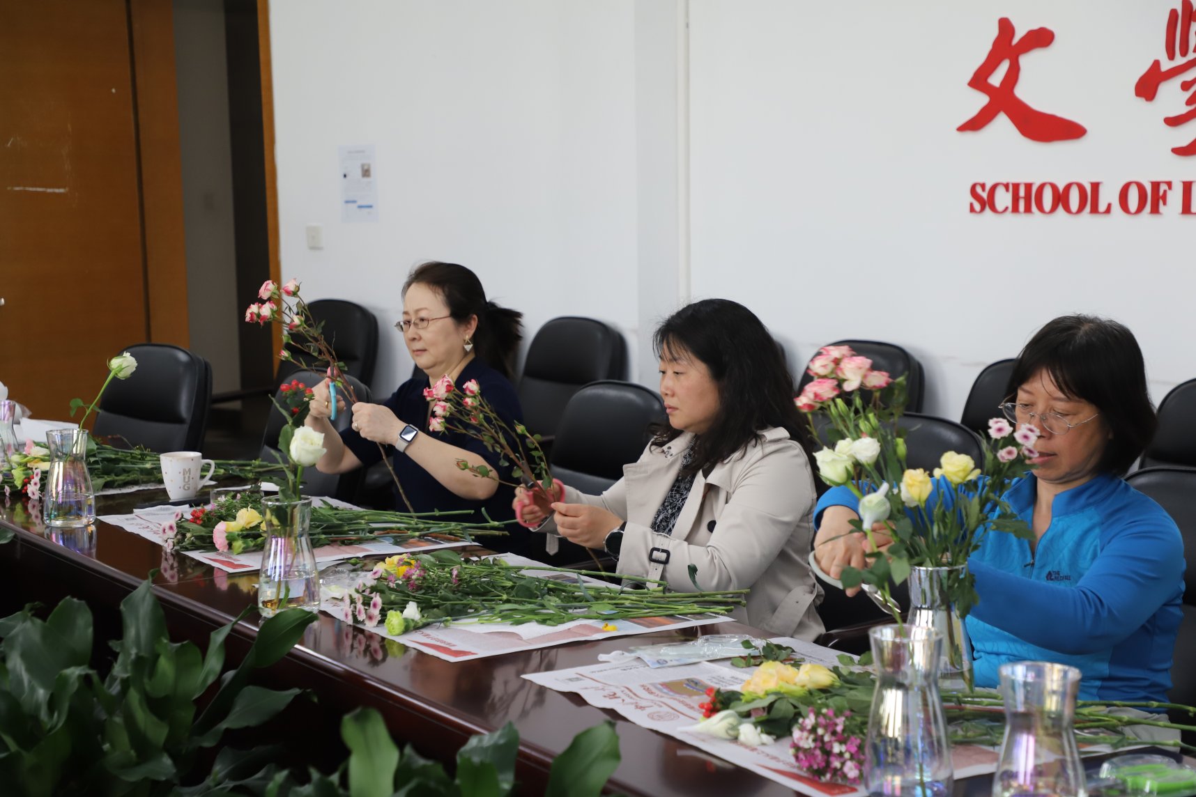 阳春三月,春暖花开。在第113个“国际劳动妇女节”来临之际,为丰富教职工精神文化生活,3月10日下午,Bet365中文比分 分工会组织举办了“花美人更美 巾帼展芳华”国际劳动妇女节创意插花活动,Bet365中文比分 党委书记颜梅、院长陈剑澜出席活动,Bet365中文比分 工会委员和教职工代表参加活动。