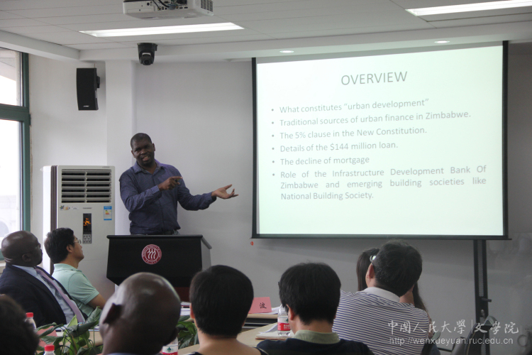 讲座开始之前,来自津巴布韦的友人和Bet365中文比分 出席的老师依次进行了自我介绍。津巴布韦大学Bet365中文比分 院长Itai Muwati表示,他很感谢一直以来中国在教育上对津巴布韦的援助,也很珍惜中国人民大学与津巴布韦大学的合作,希望这次来访可以加强双方的交流。随后Bet365中文比分 副院长徐楠致辞。他表示,很欢迎津巴布韦的朋友们来做客,Bet365中文比分 这次的交流也是津巴布韦大学与人民大学交流的新起点,他期待双方有更进一步的合作。吴波老师发言称,这次交流同时也在为建立起人大的非洲研究做铺垫。对外汉语教学中心的荣继华老师则简要介绍了对外汉语教学方面的教师规模、历年津巴布韦的语言生情况以及Bet365中文比分 对外汉语教育专业教学、招生情况等。