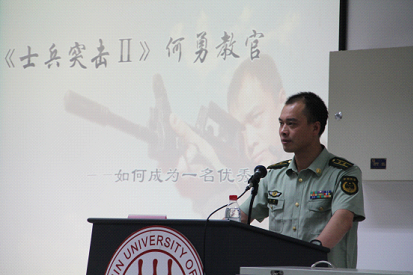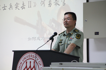 交流活动在《士兵突击》宣传片花中拉开序幕,何勇总教官结合自身经历,围绕“一名合格指挥员的必备素质、综合能力和基本要求”等内容对国防生的从军优势及不足之处进行了客观分析,鼓励国防生同学牢记誓言、坚定信心、大胆创新;杨学敏副主任、任罡教员也结合从军感悟作了交流发言,并围绕国防生关心的热点话题与同学们进行了现场交流互动;胡玲莉副书记介绍了人民大学举办这次交流活动的初衷,对国防生一直以来的出色表现给予了充分的肯定,并对国防生要进一步引领校风、学风建设提出了希望。