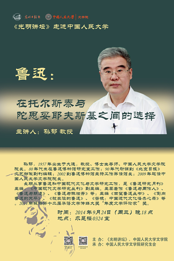 孙郁教授讲述“鲁迅:在托尔斯泰与陀思妥耶夫斯基之间的选择”
