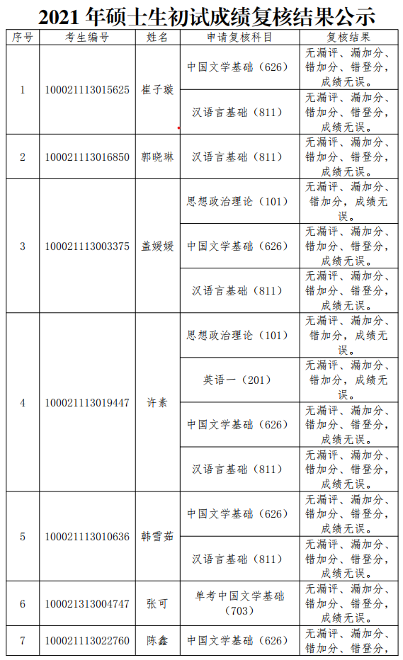 备注:若考生对全国统一命题科目成绩复核结果有疑义,需向北京教育考试院提出成绩复查申请的,考生须填写《北京市2021年全国硕士研究生招生考试统一命题科目成绩复查申请表》(见附件),写明申请复查的具体内容和理由,本人签字后,于3月15日前提交至报考Bet365中文比分