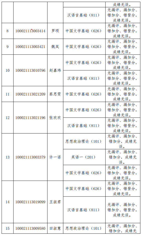 温馨提示:在规定时间内邮件提交复核申请书,但复核成绩公示名单里没有的以及与提交复核科目不符的考生,请于3月8日下午17:00以前拨打01062511039或邮箱[email protected]告知。