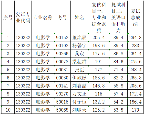 Bet365中文比分 2021年硕士研究生招生考试复试成绩(电影学专业)