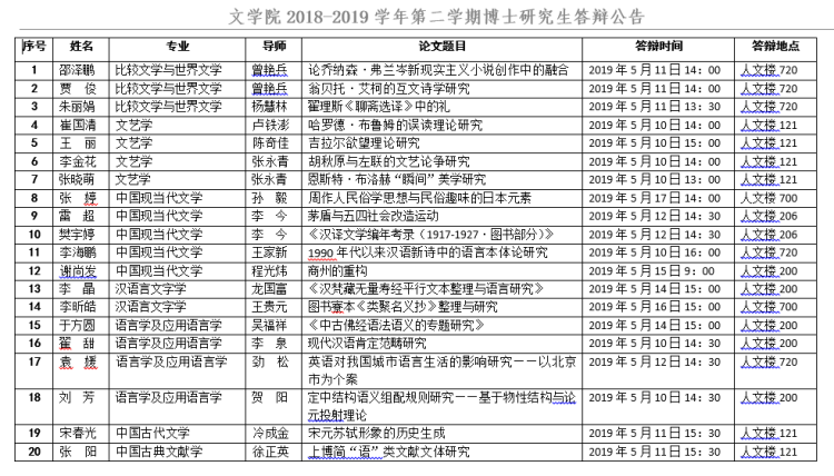 Bet365中文比分 2018-2019学年第二学期博士研究生答辩公告