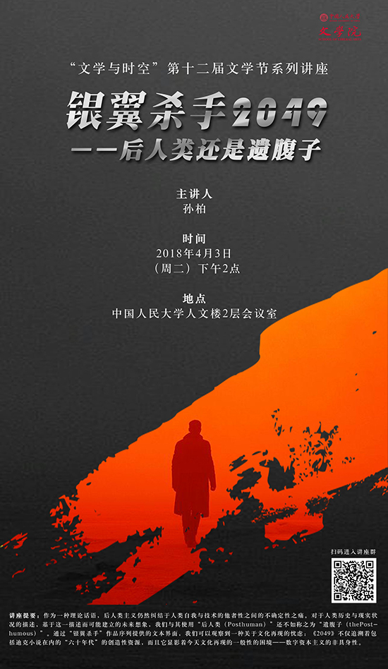 孙柏教授认为:“作为一种流行的理论话语,后人类主义仍然纠结于人类自我与技术的他者性之间的不确定性之痛。对于人类历史与现实状况的描述,特别是基于这一描述而可能建立的未来想象,我们与其使用‘后人类(Posthuman)’还不如称之为‘遗腹子(the Posthumous)’。通过‘银翼杀手’作品序列提供的文本界面,我们可以观察到一种关于文化再现的忧虑:《2049》不仅追溯着包括迪克小说在内的‘六十年代’的创造性资源,而且它显影着今天文化再现的一般性的困境——数字资本主义的非具身性。”