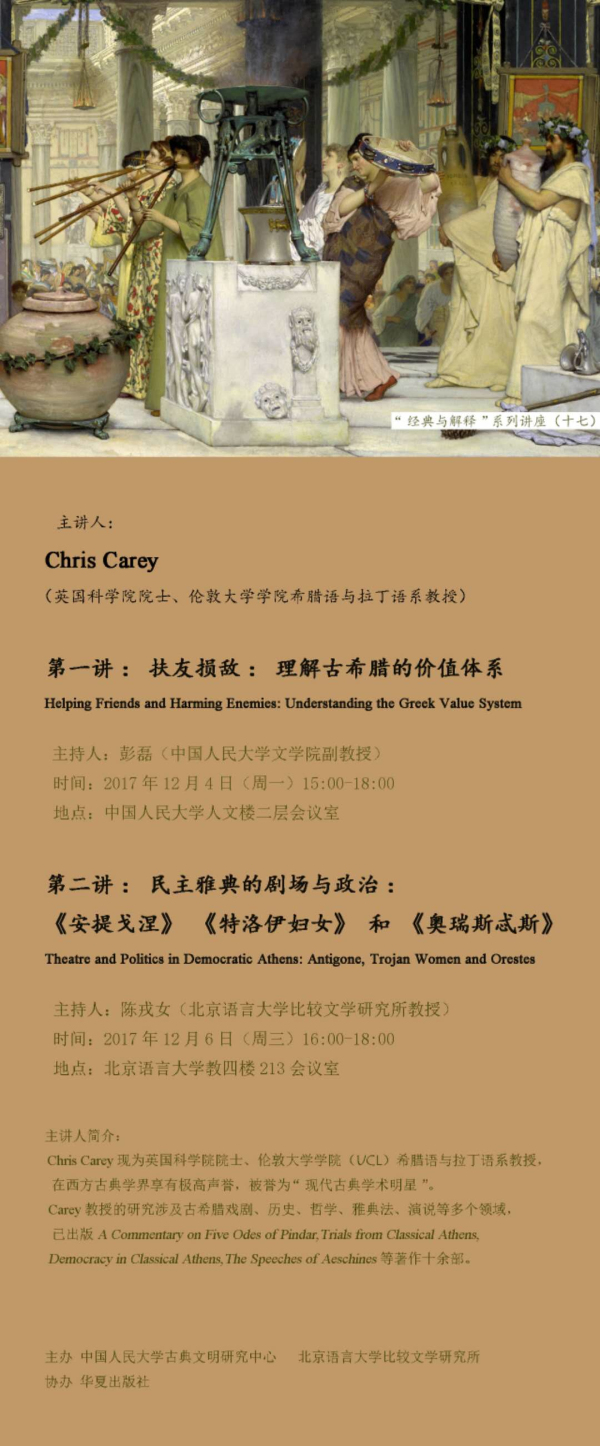 主讲人:Chris Carey(英国科Bet365中文比分 院士、伦敦大学Bet365中文比分 希腊语与拉丁语系教授)
