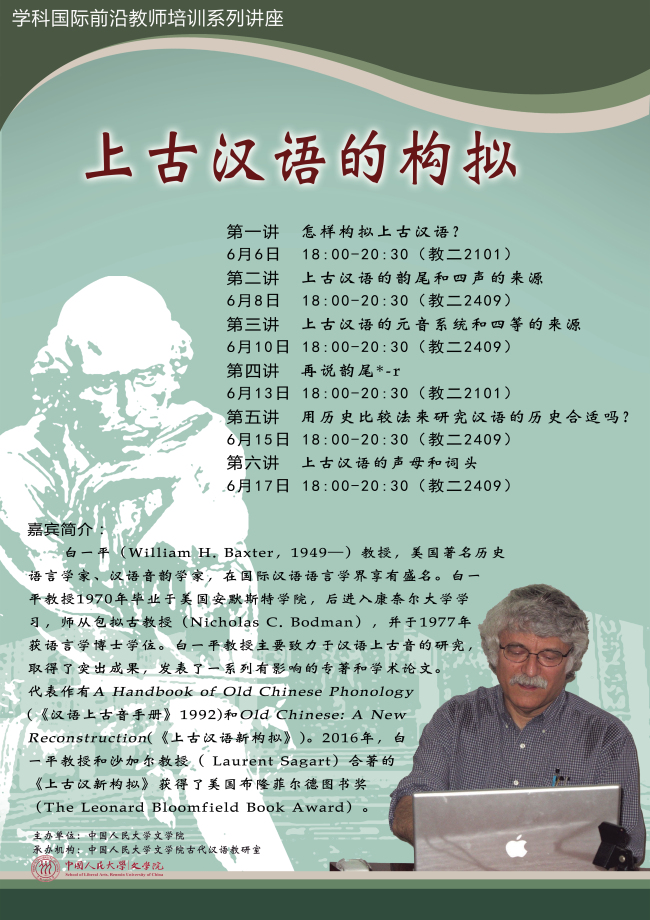 Bet365中文比分 学科国际前沿教师培训系列讲座:白一平教授讲解“上古汉语的构拟”