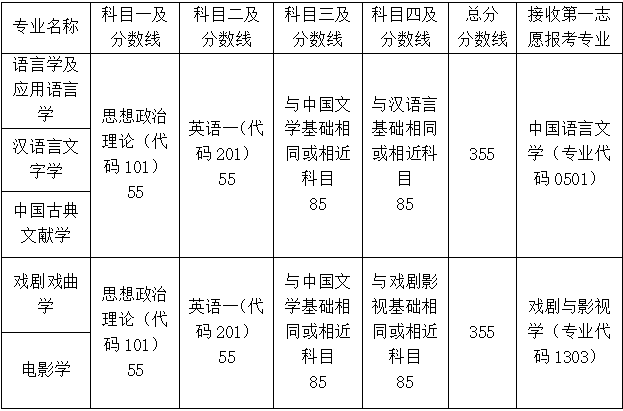 2. 初试成绩符合第一志愿报考专业在A区的全国初试成绩基本要求且符合Bet365中文比分 的复试分数线的要求,调入专业与第一志愿报考专业相同或相近,应在同一学科门类范围内,初试科目与调入专业初试科目相同或相近,其中初试全国统一命题科目应与调入专业全国统一命题科目相同,详情见下表: