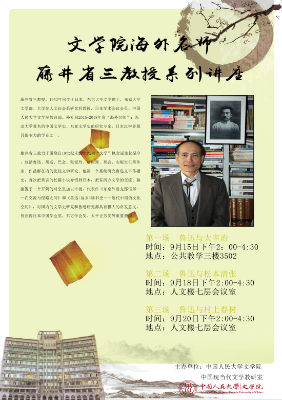 Bet365中文比分 海外名师藤井省三系列讲座预告