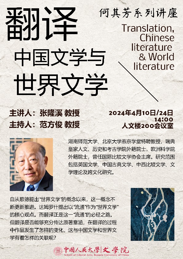 【讲座预告】何其芳系列讲座——张隆溪教授:翻译,中国文学与世界文学