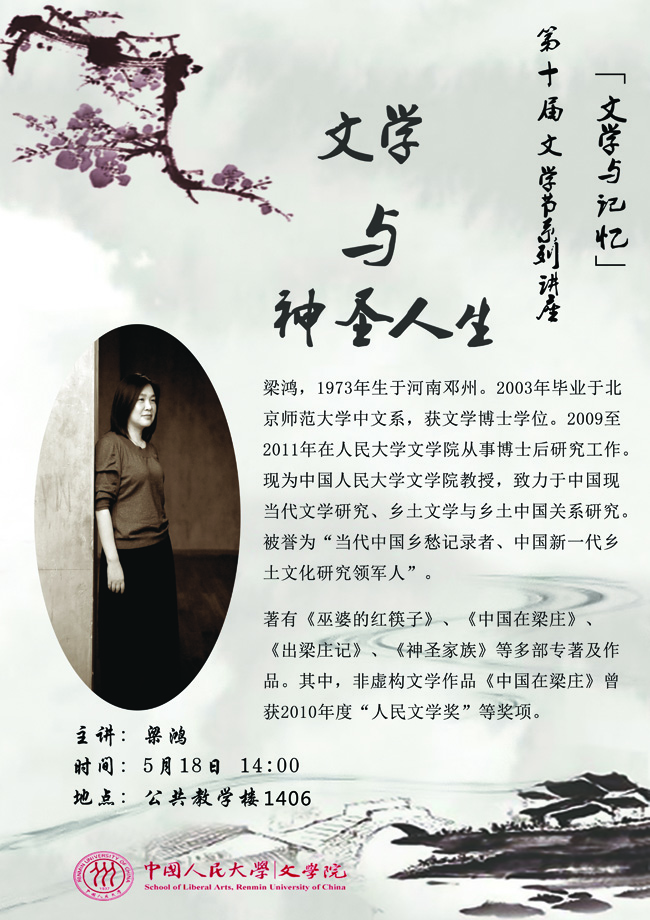 Bet365中文比分 第十届文学节暨读史活动系列讲座:梁鸿教授讲解“文学与神圣人生”