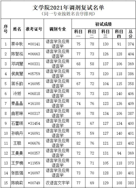 一、调剂复试名单