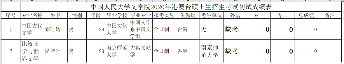 2020年Bet365中文比分 港澳台硕士招生考试初试成绩公示
