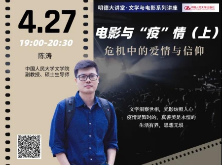 “电影与‘疫’情”讲座希望通过对“疫情”主题电影的解读,来帮助困于狭小天地的朋友们在非常时期感受人性的光辉,深化理性的思考,提升艺术的境界。愿求真的信念坚定凄惶的心,人性的良善慰藉无依的人,对美的向往超拔沉滞的生活。