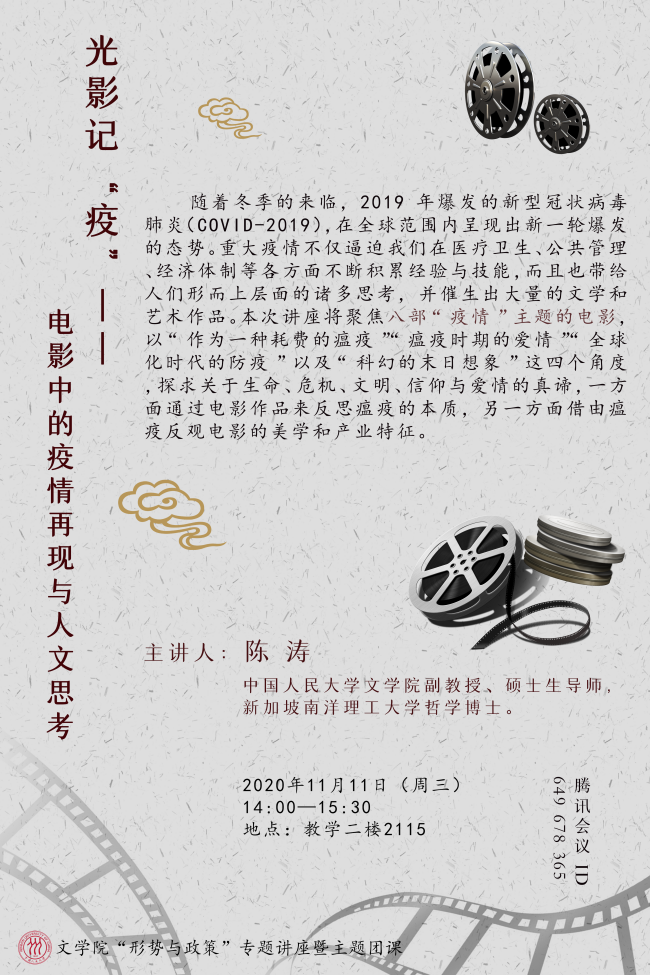 【讲座预告】光影记“疫”——电影中的疫情再现与人文思考