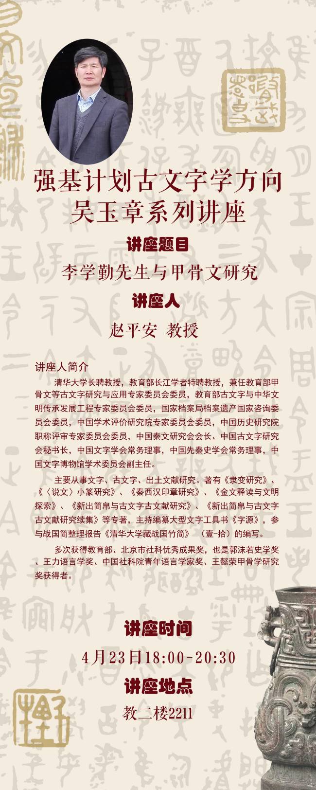 【讲座预告】强基计划古文字学方向 吴玉章系列讲座第十二讲李学勤先生与甲骨文研究