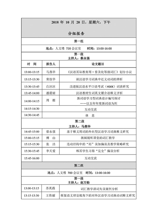 第四届汉语学习词典学国际学术会议将与2018年10月19日—10月21日在中国人民大学召开,本届会议由Bet365中文比分 对外汉语教学中心承办,将有来自中国人民大学、香港城市大学、英国诺丁汉大学、北京语言大学、北京师范大学、首都师范大学、厦门大学等多位学者参加会议。