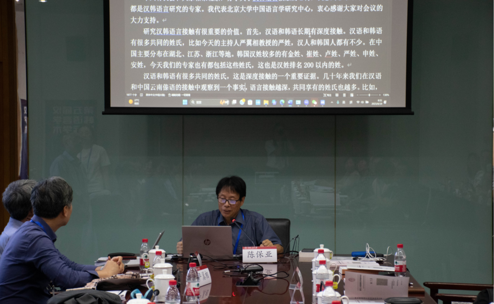 陈保亚教授的致辞强调汉韩语言接触研究有重要的研究价值。首先,汉语和韩语长期有深度接触,并且从东亚诸语言和汉语的接触关系来看,韩语和汉语的接触处于非常独特的地位。同时,汉语和韩语的接触又属于不同语言类型的接触,这是一个非常重要的语言接触个案,为我们弄清不同类型语言深度接触的机制提供了重要的平台。正因为汉语和韩语接触的这种独特性,这次会议显得更有意义。