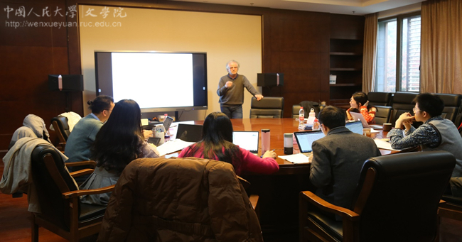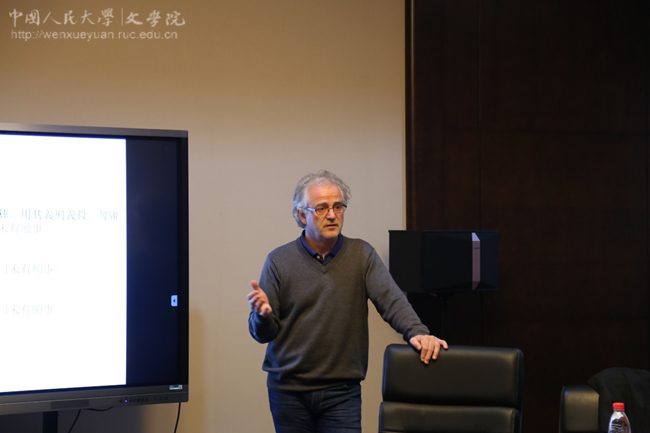 在研讨课上,柯马丁教授首先简要介绍了《左传》在西方汉学界(尤其是英语世界)的研究历史与现状,他指出近年来随着全新英译本的出版和相关研究的推进,《左传》正日益成为海外早期中国研究中最为重要的文本,不少西方学者在这一领域中做出了富于洞见的研究。随后,参与研讨的研究生和柯马丁教授以四本研究早期中国的西方汉学专著为中心,就西方学者研究《左传》的方法和旨趣以及早期中国文本的诸多问题进行了细致讨论。最后,柯马丁教授做了“Quotation, Memory, and Performance: Actualizations of Voices Past in Zuozhuan”的主题报告。