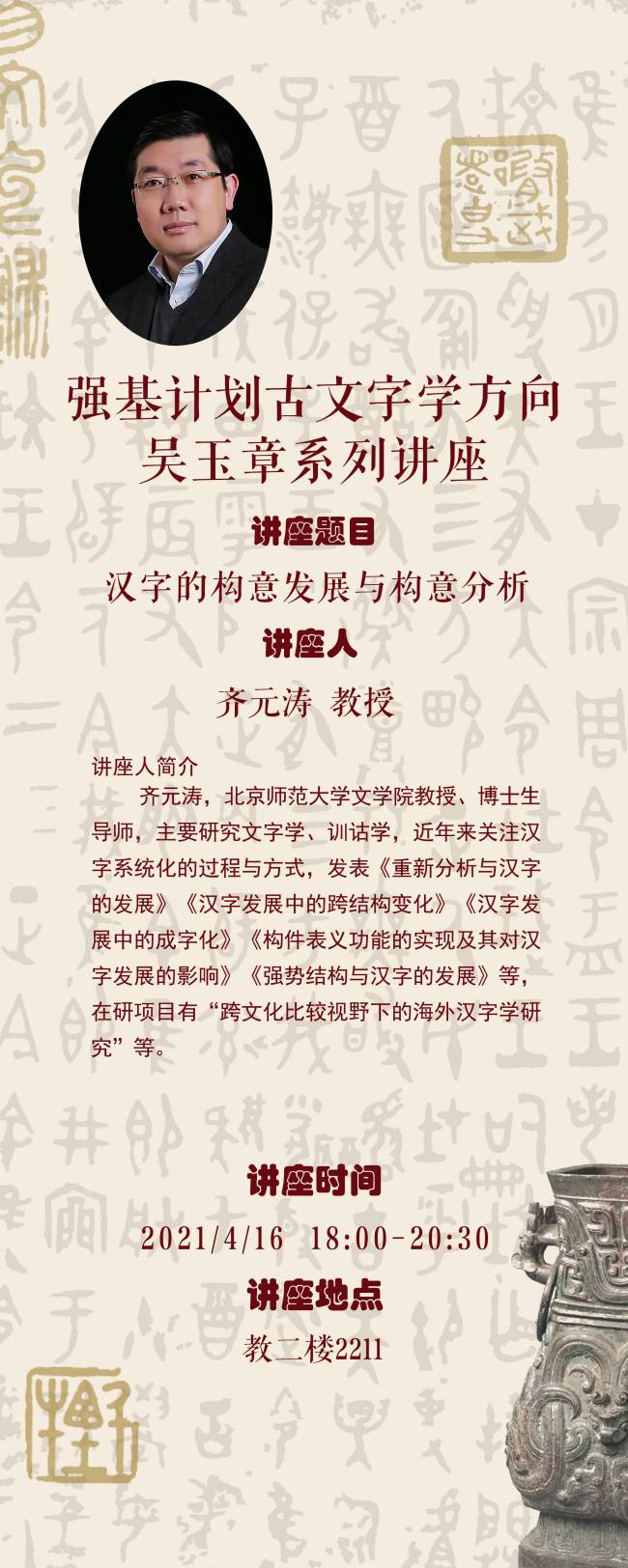 【讲座预告】强基计划古文字学方向吴玉章系列讲座第十一讲 汉字的构意发展与构意分析