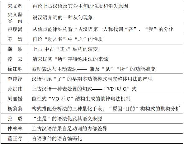 北京语言大学刘丽媛老师对 “VO不C”能性结构的产生过程进行了深入探讨,揭露了TP层韵律在句法演变过程中发生的平行演变;中国人民大学董正存老师以言语事件参与者和言语内容为例对汉语中言语事件的语言编码化问题进行了讨论。