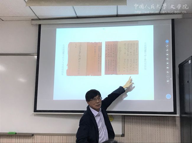 10月16日晚,Bet365中文比分 吴玉章系列讲座第三讲在教学四楼4106举行。本次讲座邀请到浙江大学文科资深教授、中国文字学会副会长、中国敦煌吐鲁番学会副会长、浙江省语言学会会长张涌泉教授主讲,讲座题为“敦煌藏经洞文献之谜发覆”。