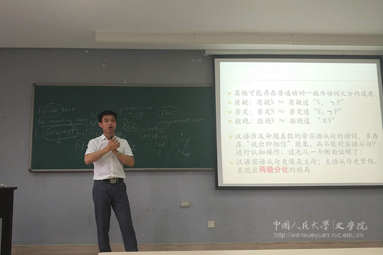 4月20日下午,汉语国际教育专题讲座在苏州校区修远楼303教室举行。中国社会科Bet365中文比分 语言研究所副研究员,中国社会科Bet365中文比分 研究生院硕士生导师,《中国语文》编辑唐正大老师为我们带来了主题为“言者责任与汉语主宾语从句的叙实性初探”的精彩讲座。