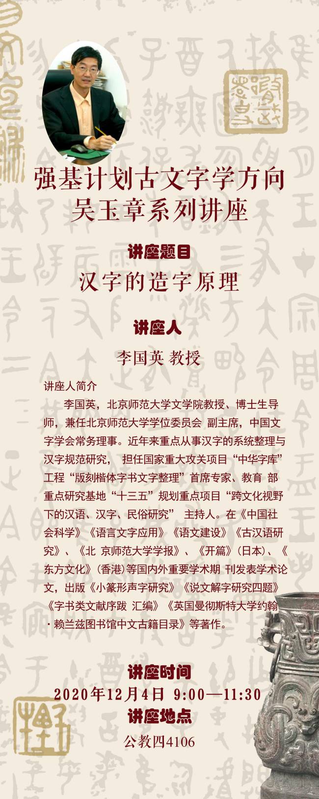 【讲座预告】强基计划古文字学方向 吴玉章系列讲座第七讲“汉字的造字原理”