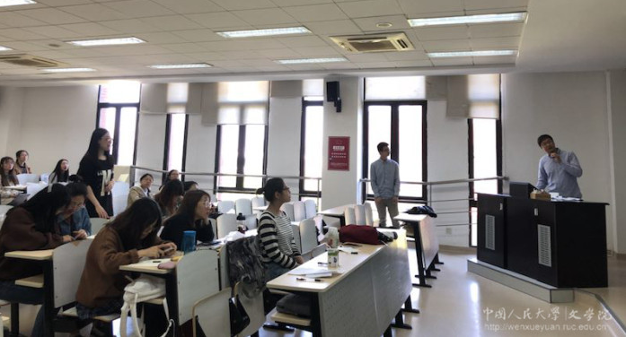 讲座结束后,洪炜老师与汉硕同学就讲座内容和论文选题进行了亲切交流,讲座在轻松热情的氛围中结束。