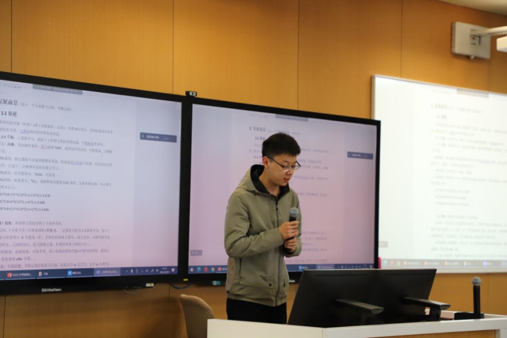 2018级本科生代表吴润清和同学们详细分享了自己在保研、课程学习、学生工作、学术科研等方面的经验与体会,以朋辈视角解答了同学们当下较为关注的问题,给出了实用建议。