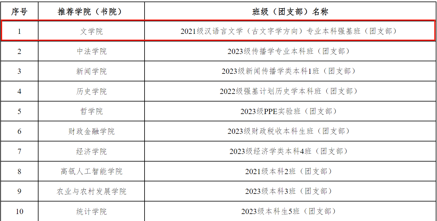 近日,在我校2024年度先进班团集体评选工作中,Bet365中文比分 班团集体表现出色,2021级汉语言文学(古文字学方向)专业本科强基班(团支部)获本科十佳班集体(红旗团支部),2023级硕士2班(团支部)获研究生十佳班集体(红旗团支部),这也是2023年以来Bet365中文比分 基层班团组织再次斩获双十佳的优异成绩!