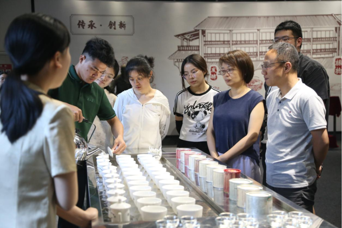 7月5日下午,研学团首站来到位于武夷山脚下的正山堂茶业有限责任公司,以深入考察当地茶文化的历史源流与发展现状。武夷山层峦叠嶂,云雾缭绕,为茶树营造出得天独厚的生长条件,承载着悠悠数千年的深厚文化底蕴。在正山堂,同学们亲身体验茶文化的独特魅力,全面了解茶叶的制作工艺和正山堂的品牌发展历史。孙悦同学感言:“于此地,我深切领略到了武夷茶文化的源远流长,知晓了金骏眉、妃子笑、正山小种等独具特色的红茶品类。每一款茶皆蕴含独特韵味,每一片茶叶都承载着丰饶的文化内涵。”