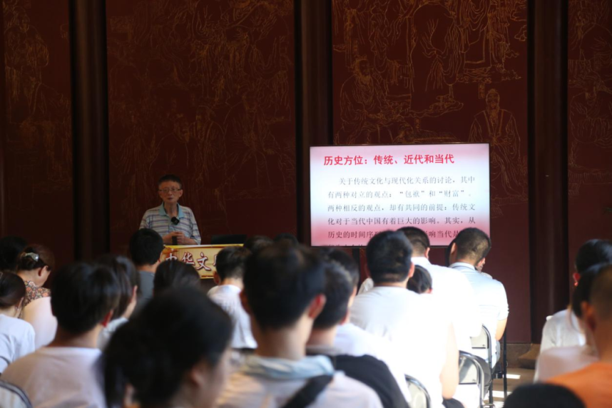 7月6日上午,研学团来到武夷山九曲溪景区,乘坐竹筏顺流而下,纵情感受武夷山的自然风貌及生态文化。同学们沉醉于这青山绿水之间,领略大自然的神奇与美妙。“习近平总书记曾提到,绿水青山就是金山银山。置身于这样的美景中,我更为深切地体悟到生态环境保护的关键意义。”房珊旭同学感慨万千。下午,师生们前往朱熹园,漫步于古老的书院,体悟朱熹理学思想的恢宏深邃。由中华文明武夷研究院举办的中华文明讲坛第六讲于园内开讲,华东师范大学哲学系陈卫平教授主讲“中国近代哲学与传统哲学的转化创新”,研学团师生们身临其境,享用一场跨越时空的哲学盛宴。