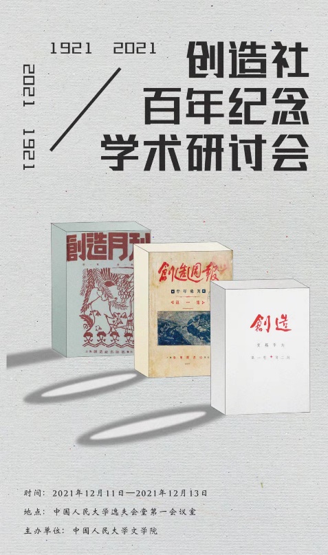在中国现代文学史上,创造社无疑是最具标志意义的文学社团之一。从前期注重“为艺术而艺术”到中后期更具有革命性的精神面貌,创造社可称得上20世纪20年代与中国共产党关系最为密切的文学团体。2021年适逢中国共产党成立百年,亦是创造社成立一百周年,为纪念创造社在中国文学与文化方面的卓越贡献,全方面回顾创造社丰厚的精神遗产,12月11日至13日,中国人民大学在逸夫会堂隆重召开“创造社百年纪念学术研讨会”。