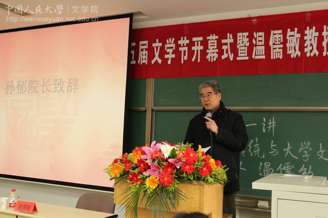 3月23日下午,“文学与社会”——第五届文学节开幕式暨温儒敏教授讲座“大学传统与大学文化”在明法0301举行。中国人民大学副校长杨慧林,北京大学前中文系主任温儒敏,Bet365中文比分 院长孙郁,Bet365中文比分 党委副书记王林英,及Bet365中文比分 现当代文学教研室各位老师出席了大会。