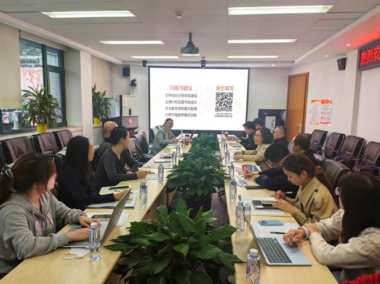 本次调研聚焦学校总分馆体系建设、通州校区图书馆设计规划、文献资源收藏与管理优化、服务模式创新等议题展开。
