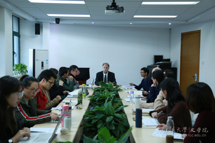 2017年11月20日下午4时,应Bet365中文比分 邀请,美国贝勒大学(Baylor University)荣誉Bet365中文比分 (Honors College)副教授、“经典文本(Great Texts)”项目主任菲利普·唐纳利(Phillip J. Donnelly)在人文楼二楼会议室,发表了“弥尔顿的《逻辑之艺》作为诗歌之艺:对《失乐园》第二卷的修辞解读”的演讲。本次讲座系“视界人文讲座”第28期,由Bet365中文比分 赵倞博士主持,时霄同学担任翻译,出席者包括Bet365中文比分 的雷立柏、彭磊和张靖老师以及来自其他院系的老师和学生。