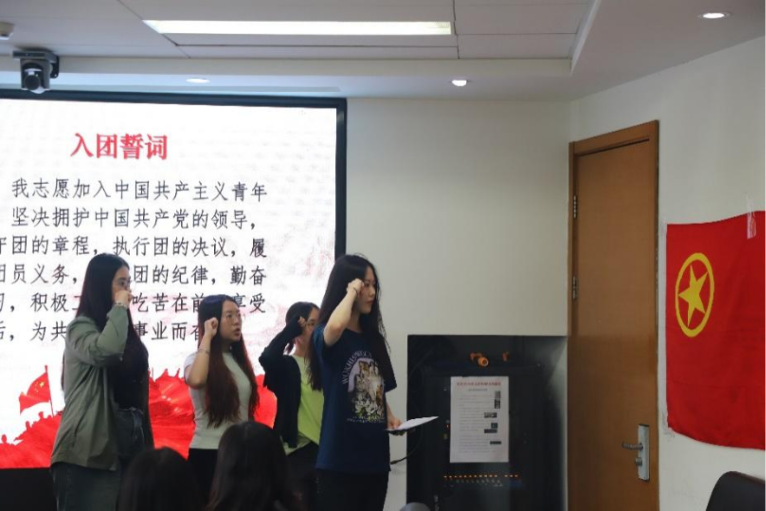 仪式在嘹亮的国歌声中拉开帷幕。2023年,经团组织培养考察,共有4名同学加入中国共产主义青年团。