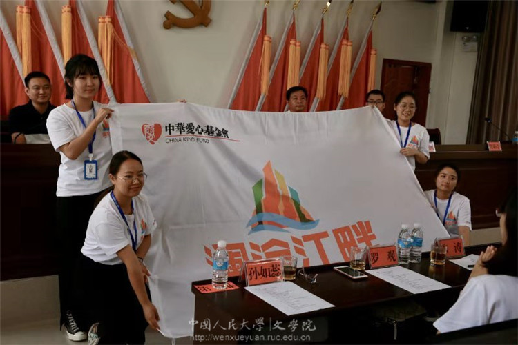 胡伶俐老师为夏令营支教团队授旗,宣布夏令营正式开营。