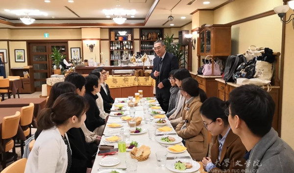 师生准备了简单而热烈的欢迎晚宴。朱万曙教授在致辞中提到,日本有两点很触动他,一是文明,人们在生活中自觉遵守规则;二是东大学生的勤奋好学,学生们几乎都能用中文流利地和中国学生交流和提问。朱老师还提到,所谓“教养”,是指高等学府不仅要教授学生知识,也要培养学生为人处世的修养。之后,石井刚老师做了简短的发言,代表Bet365中文比分