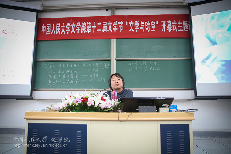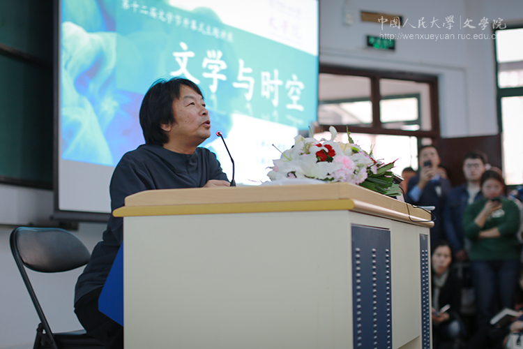 第十二届文学节“文学与时空”在教三3201正式开幕。刘震云教授应邀进行同名主题讲演,徐楠副院长主持。