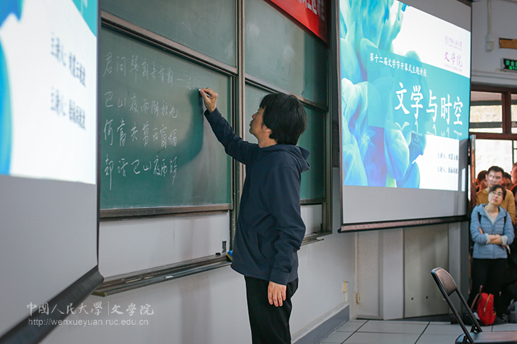 刘震云教授本次讲演围绕文学作品的“结构”展开。讲座伊始,他对“文学与时空”这一主题进行阐发,指出时间与空间的交叉与延伸,涉及文学作品的内在“结构”问题,而“结构”正是构成文学最深层的因素,“结构”所形成的力量正是考验一个作家、艺术家最重要的东西。他进而以白居易的《长恨歌》和李商隐的《夜雨寄北》为例,详细说明何为“文学时空里的文学结构”。随后又以《红楼梦》中的人物关系为例,来说明非确定性时空结构的实现。