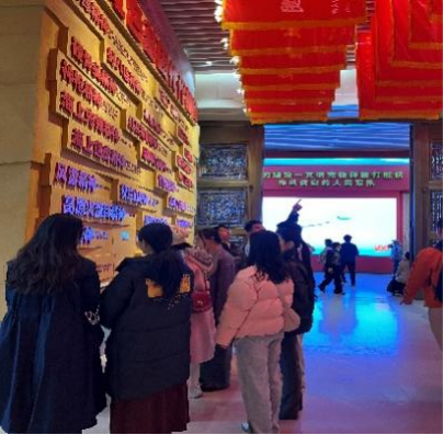 随后,同学们走进“新时代国防和军队建设成就展”,歼-20战斗机模型、山东舰航母模型等展品前人头攒动。大家驻足凝视,认真聆听讲解,详细了解我国在隐身战机、航空母舰、新型导弹等领域的突破成果,当得知这些装备均为自主研发、达到世界先进水平时,现场响起阵阵赞叹,自豪感与使命感在同学们心中油然而生。