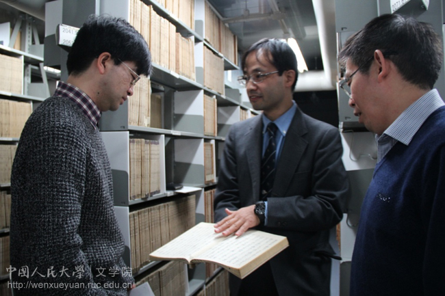在藏书馆,渡边正男准教授向我们展示了资料所馆藏的影印史料;之后师生们来到特别收藏库,近距离参观了国宝级文物岛津家文书。