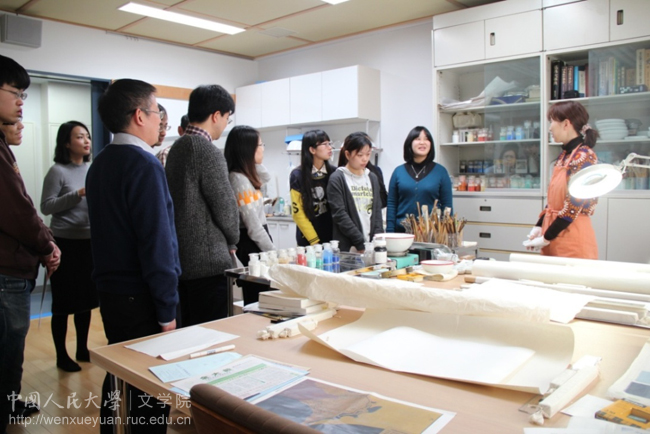随后,访日团参观了史料编纂所的史料保存技术室。史料保存技术室是以史料的修复、影写、模写和照相为主要内容的工作室。三位工作人员分别向Bet365中文比分 师生介绍了史料保存、复制和修复的技术,并进行了生动的演示,师生们也就一些具体问题和工作人员进行了交流和讨论。