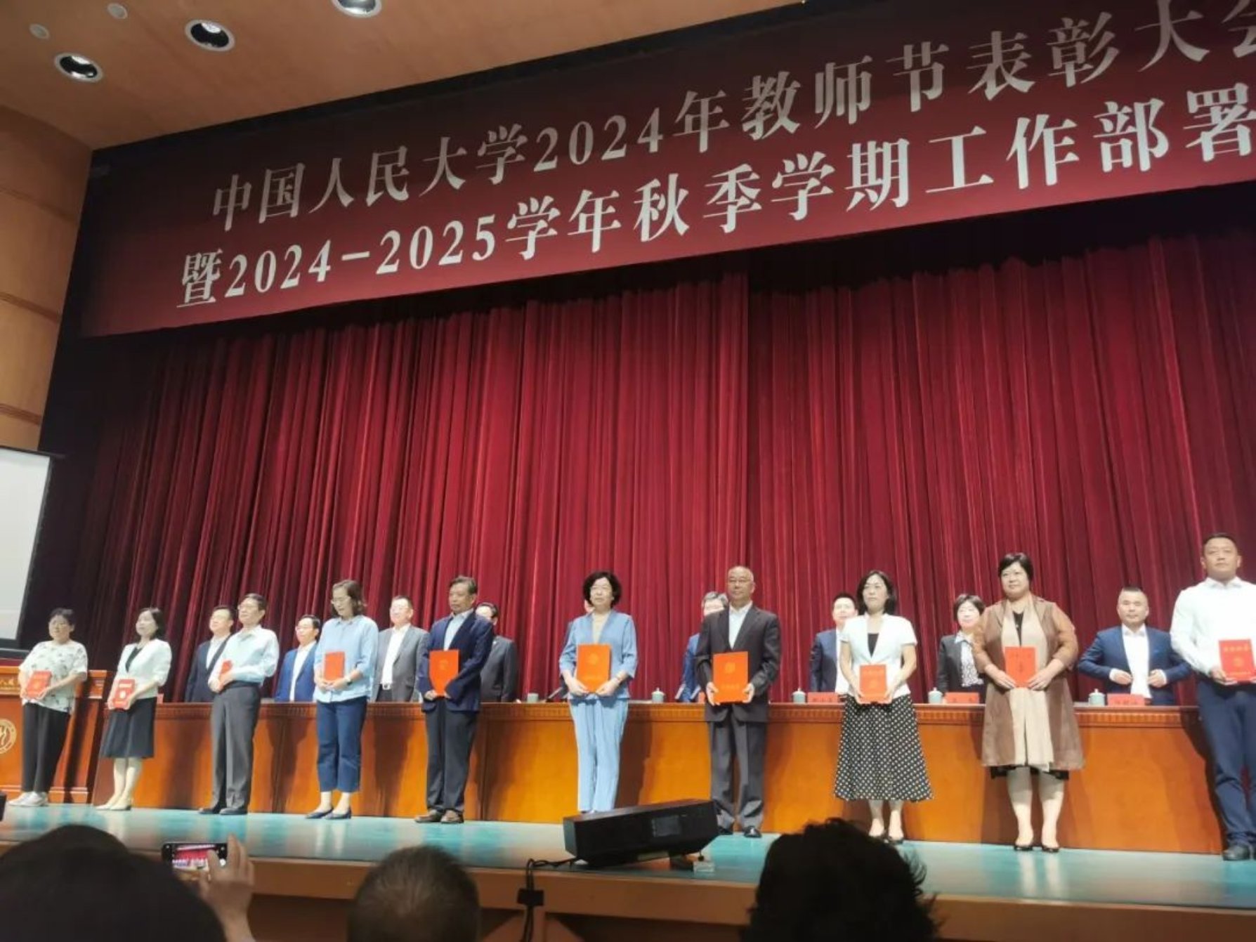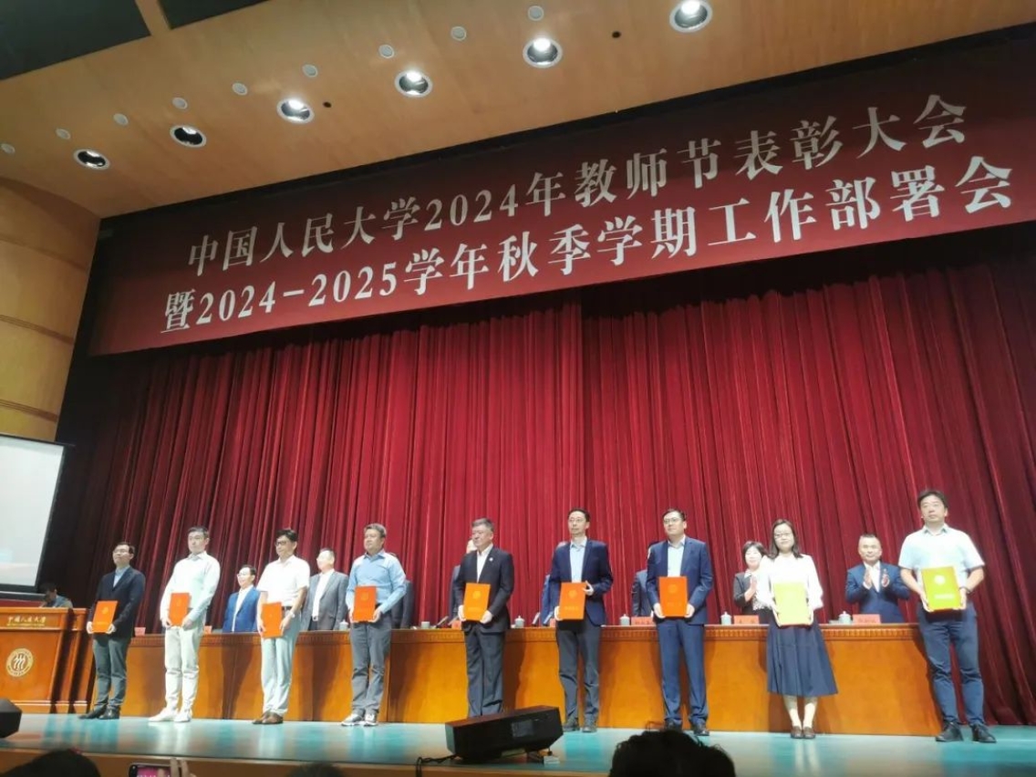 徐建委教授(左4)作为中国人民大学2024年度科研标兵获奖代表领奖