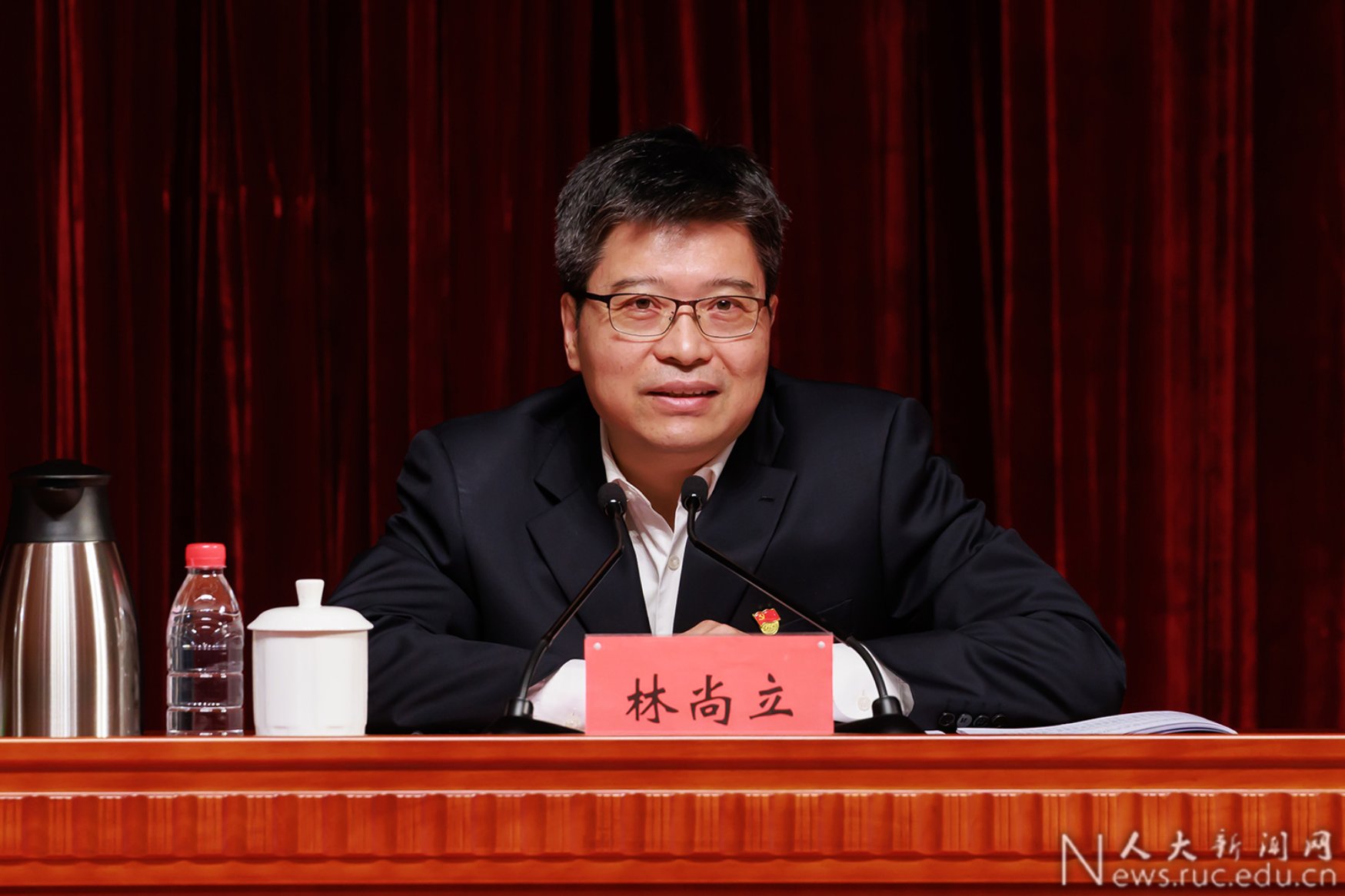 林尚立强调,党的二十大开启的新征程,也是中国人民大学的新征程。要结合习近平总书记关于中国人民大学建设中国特色、世界一流大学的重要指示精神,把党的二十大精神全面贯彻落实到建设中国特色、世界一流大学的各项工作中,上下齐心,全力推进各项工作部署。聚焦“办一流大学”,全力落实科教兴国战略,走好建设中国特色、一流大学新路,加快建设中国特色、世界一流大学。聚焦“育一流学生”,整体提升中国人民大学为党育人、为国育才的办学水平,为全面建设社会主义现代化国家、全面推进中华民族伟大复兴培养造就大批德才兼备的高素质人オ。聚焦“建一流学科”,要贯彻习近平总书记在学校考察调研时重要讲话精神,落实党的二十大报告提出的“深入实施马克思主义理论研究和建设工程,加快建设中国特色哲学社会科学学科体系、学术体系、话语体系,培育壮大哲学社会科学人才队伍”的战略部署,大力推进一流学科建设、创新高地建设、人才中心建设。聚焦“做一流学术”,聚焦事关党和国家事业发展的重大战略问题研究,为党和国家事业发展贡献人大智慧、为中国特色哲学社会科学真正屹立于世界学术之林贡献人大力量。