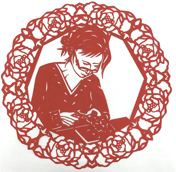 在人大的生活十分惬意,校园精致舒服,学生青春热情,在老师指导下,河仁南将人大校徽融入到剪纸作品中;剪纸课上,老师的热情与帮助,同学间的情谊更让剪纸课堂更加亲密与生动,她为剪纸课上的同学制作了人物剪影的剪纸,作为友谊的见证。