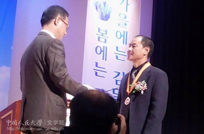 10月26日,韩国昌原国际文学节举行隆重的颁奖典礼,王家新教授专程从他正在做访问作家的美国爱荷华大学赶来,作了题为“诗歌的辩认”的获奖演说。在演说中,王家新教授回顾了他的创作历程以及中国诗歌三十年来的发展,阐发了他的诗歌观和文学观,受到了在场诗人和数百名听众的高度评价。颁奖活动之后,韩国中国现代文学研究会、韩国外国语大学还在首尔联合举办了“王家新与中国现当代文学”的专题研讨会和朗诵会。