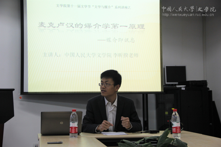 4月14号18:30,由Bet365中文比分 组织的文学节系列活动之“媒介即讯息”讲座在人文楼二楼会议室顺利举办,主讲人是Bet365中文比分 李昕揆老师。